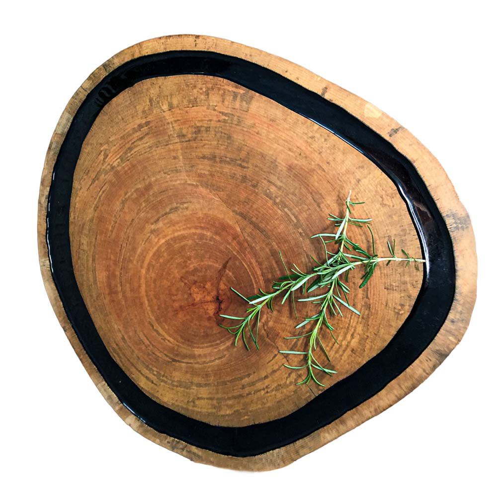 Tábua de Churrasco da linha Premium da Wood Artefac com cava resinada com resina na cor preto